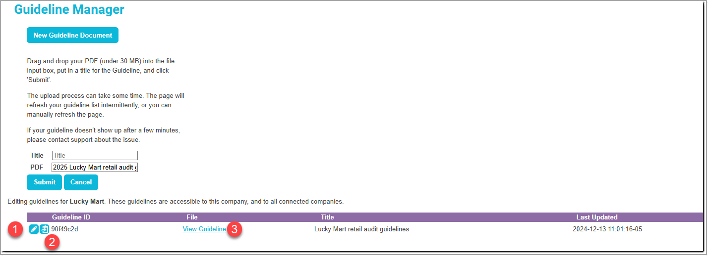 - Edit the guideline (change the title or upload a new PDF)